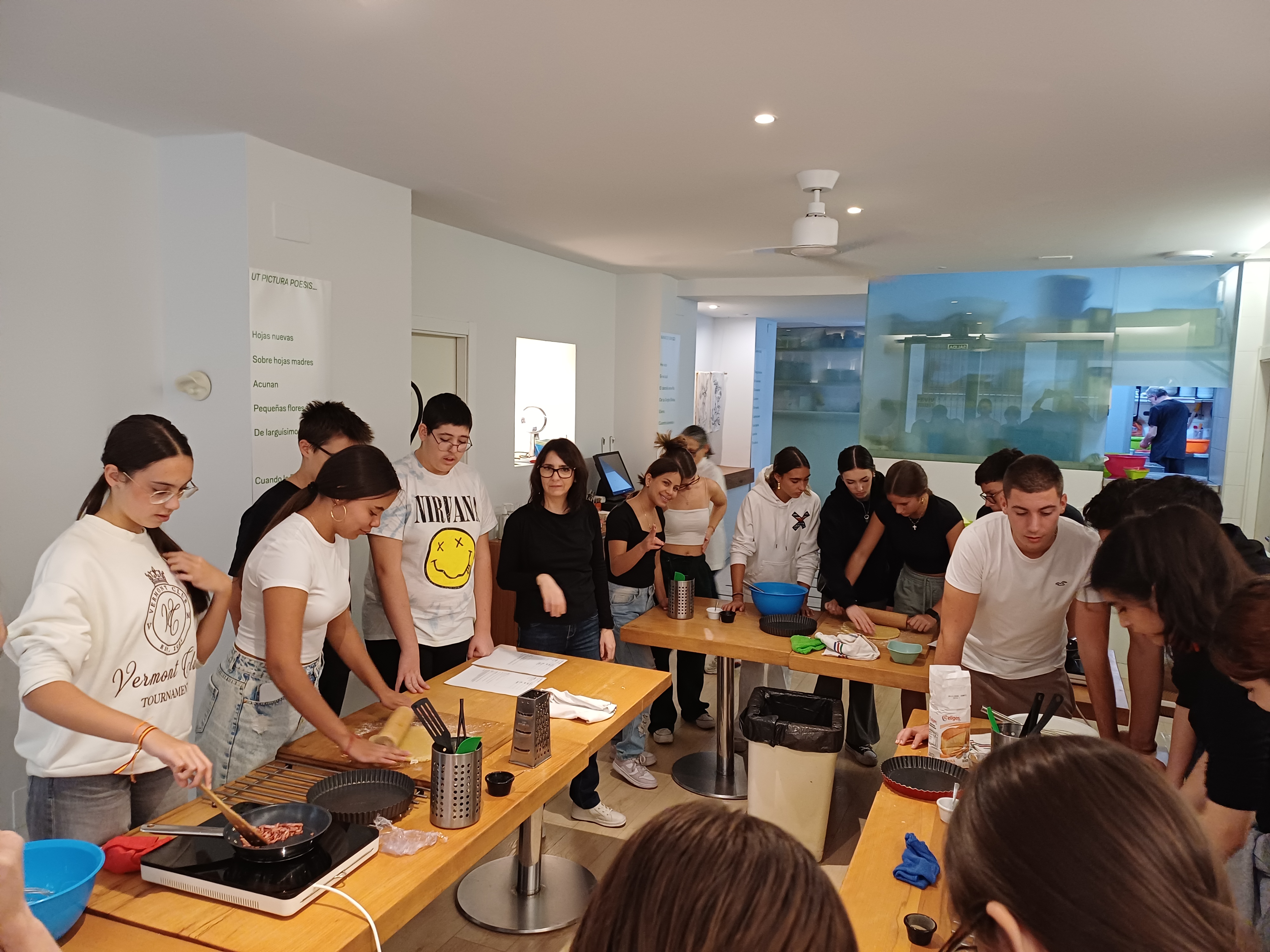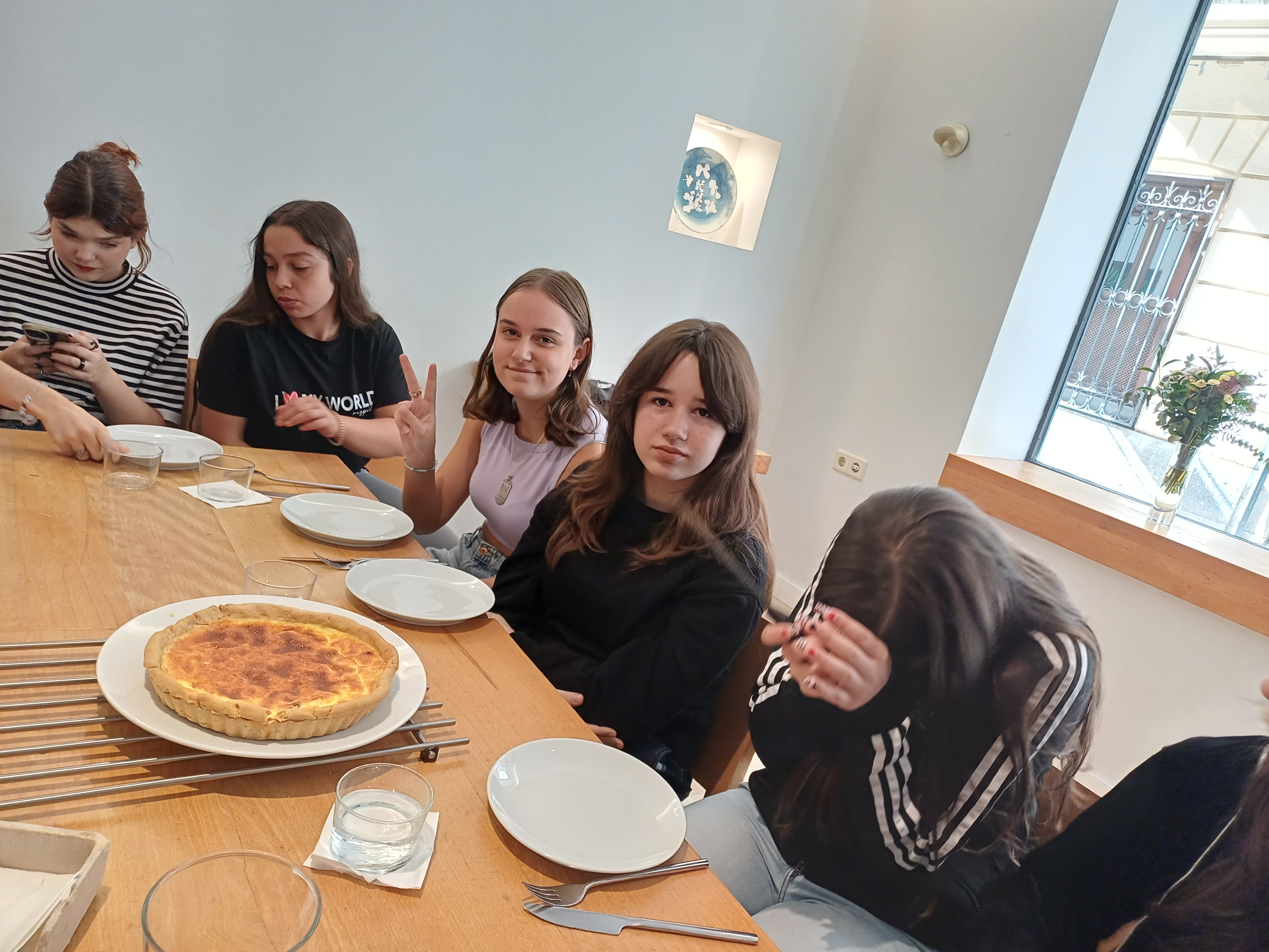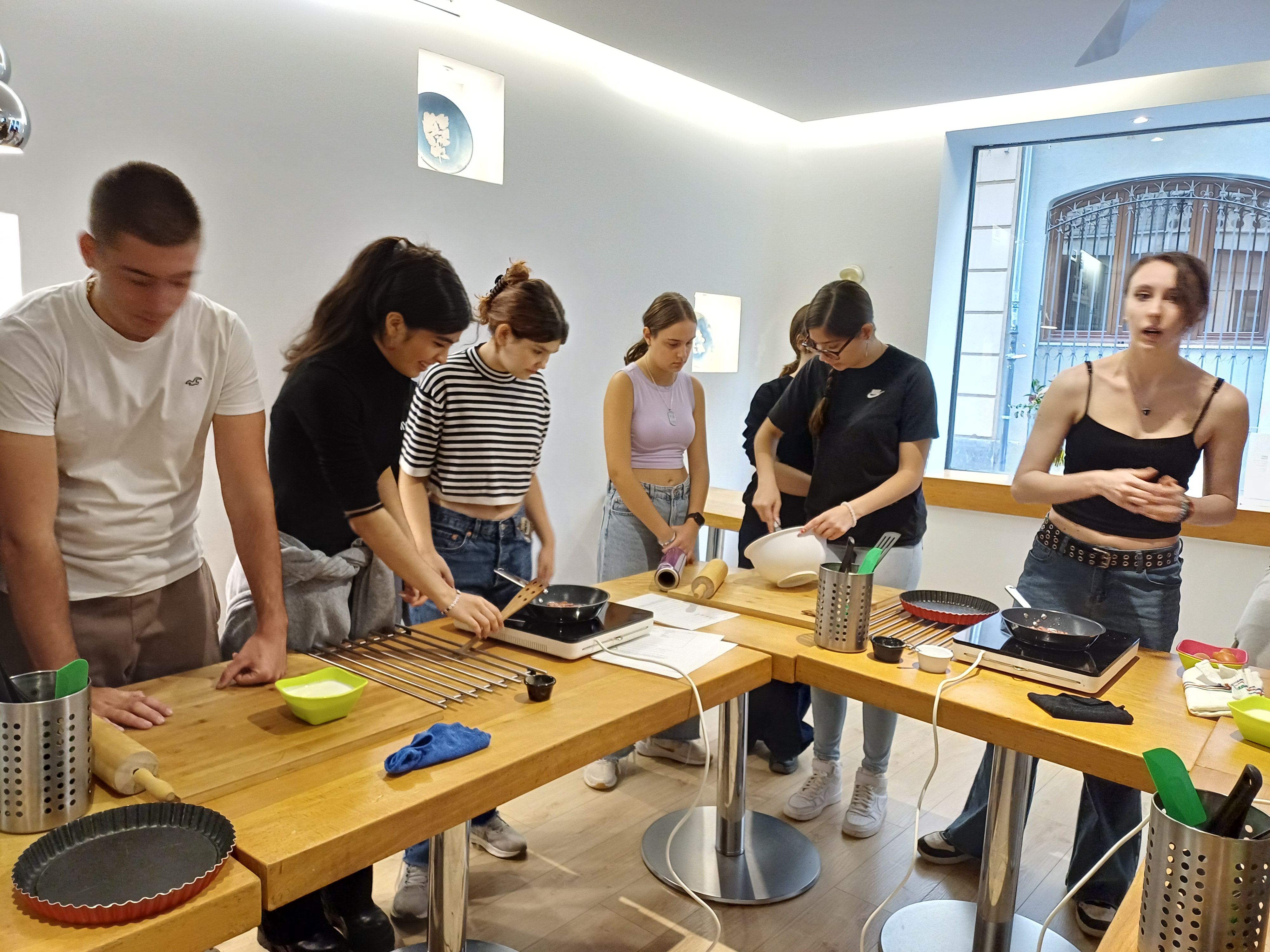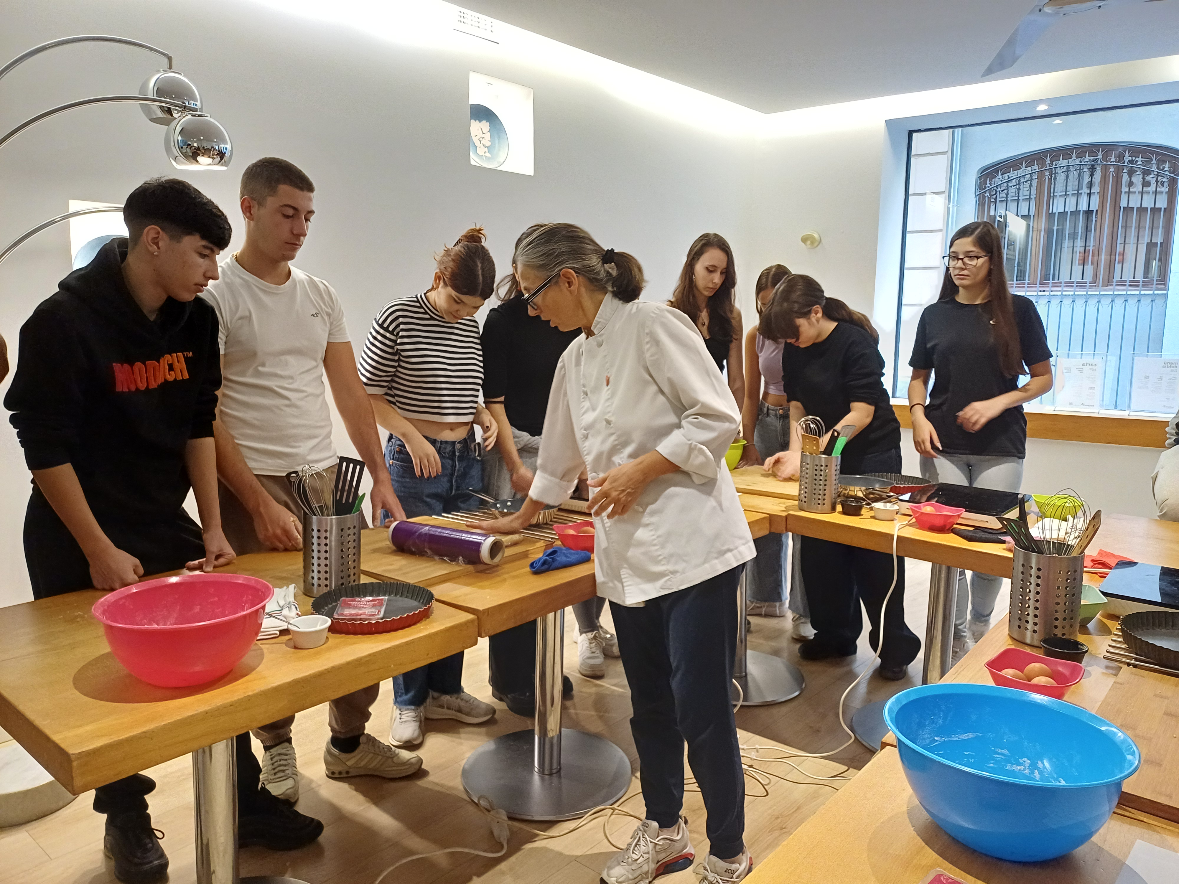 La cocinera, francesa y dueña del restaurante, nos esperaba con las mesas puestas y el menaje de cocina necesario para la preparación del plato. El alumnado disfrutó mucho durante el proceso de elaboración y, cómo no, en la degustación de las quiches. ¡Una actividad deliciosa!