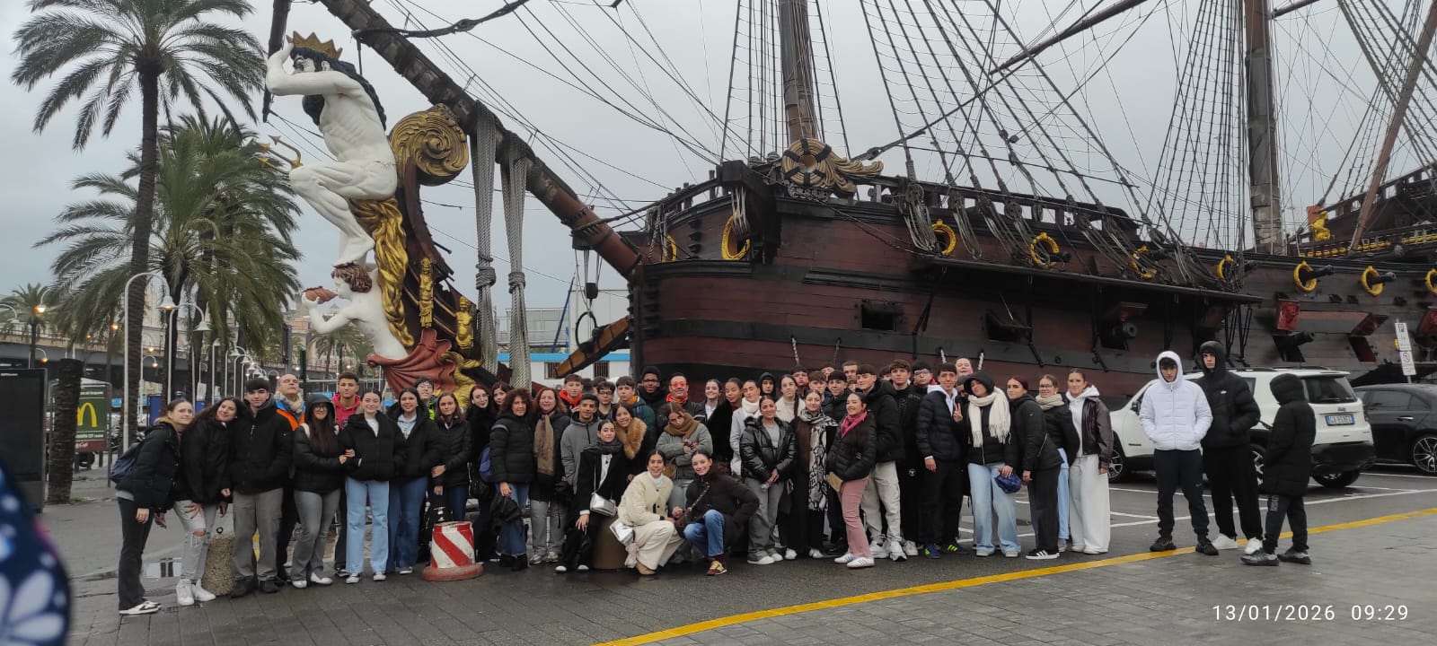 El martes, 13 de enero, visitamos la ciudad de Génova, llegamos andando hasta el galeón español del siglo del siglo XIII «Neptuno» desde donde empezamos nuestra visita a la ciudad, en ella visitamos el Palacio Ducal, la plaza Ferrari, la puerta Soprana para llegar a la casa de Cristóbal Colón, junto a ella visitamos el clautro del Covento de Santa Andrea, continuamos hacia la Catedral de San Lorenzo ( siglo XIV) de un estilo único, mezcla de de estilos, el Románico, en su estructura original de franjas blancas y negras, y el Gótico en sus portales, arcos y decoración, seguidamente paseando entre calles estrechas llegamos a la Iglesia de Santa Maria delle Vigne, es una de las iglesias más antiguas de Génova, a continuación visitamos la casa donde pasó una temporada, junto a su tío, Albert Einstein, que aprovechó para descansar en esta bonita ciudad, un poco de tiempo libre y vuelta al barco.